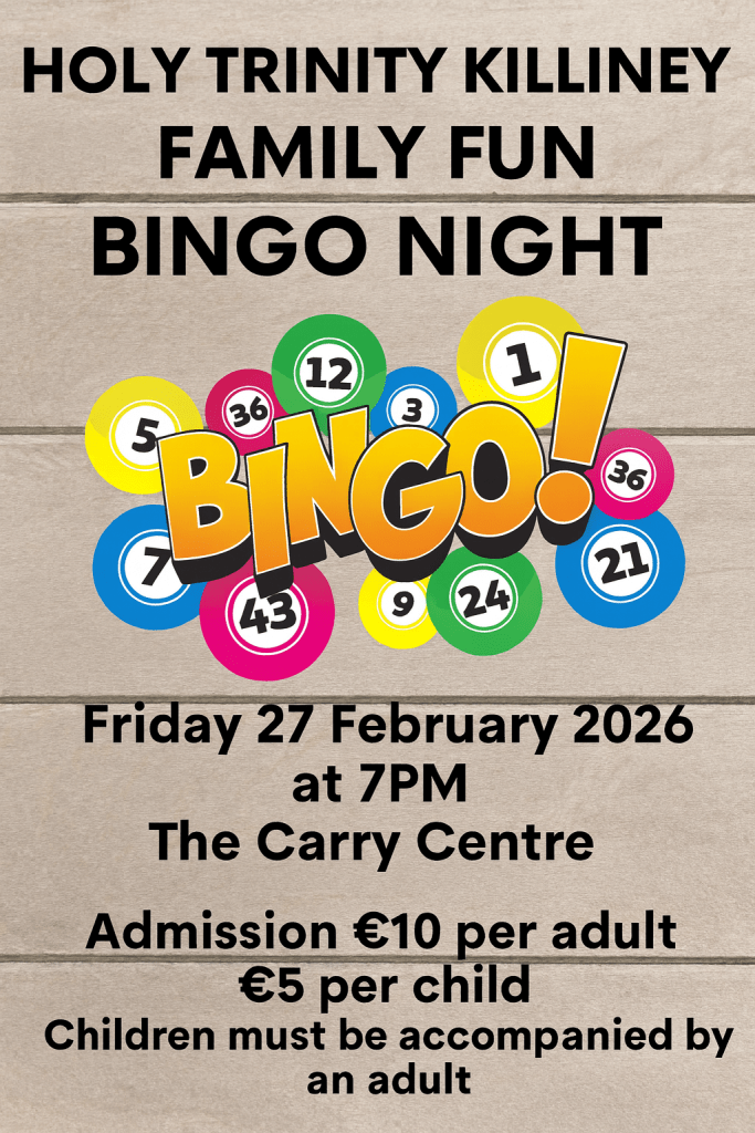A family fun Bingo Night will be held in The Carry Hall on Friday 27 February in aid of Parish funds. This is an intergenerational event for adults and children in the Parish and the surrounding community. If you’ve never played Bingo before, it’s a fun way to start. There will be refreshments at the interval and a small raffle. A flyer is attached, please invite your family and friends.